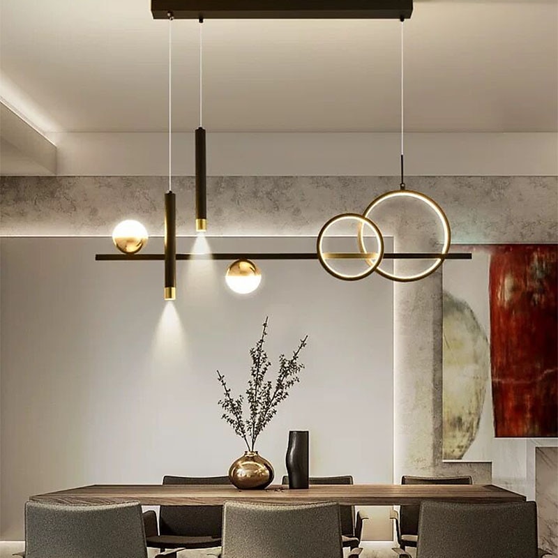 برچسب: لوستر, لوستر با جزئیات طلایی, لوستر خطی, لوستر لاینر, لوستر لاینر مشکی