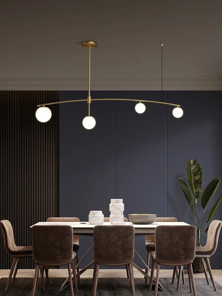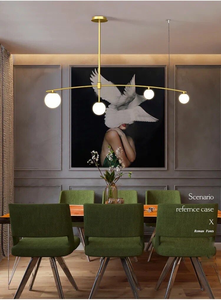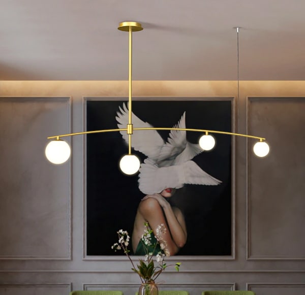 بدنه فلزی آلومینیوم با رنگ طلایی درخشان، نمادی از تجمل و اصالت است. چهار حباب شیری رنگ، نوری آفتابی و ملایم را به نرمی در فضا پخش می‌کنند و فضایی گرم، دعوت‌کننده و سرشار از آرامش را ایجاد می‌نمایند.