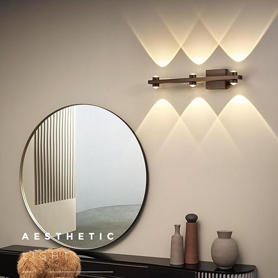 - ایجاد سایه و حجم: پرتاب نور در دو جهت، بافت دیوار را برجسته کرده و یک الگوی بصری متقارن و جذاب (Up & Down) ایجاد میکند.