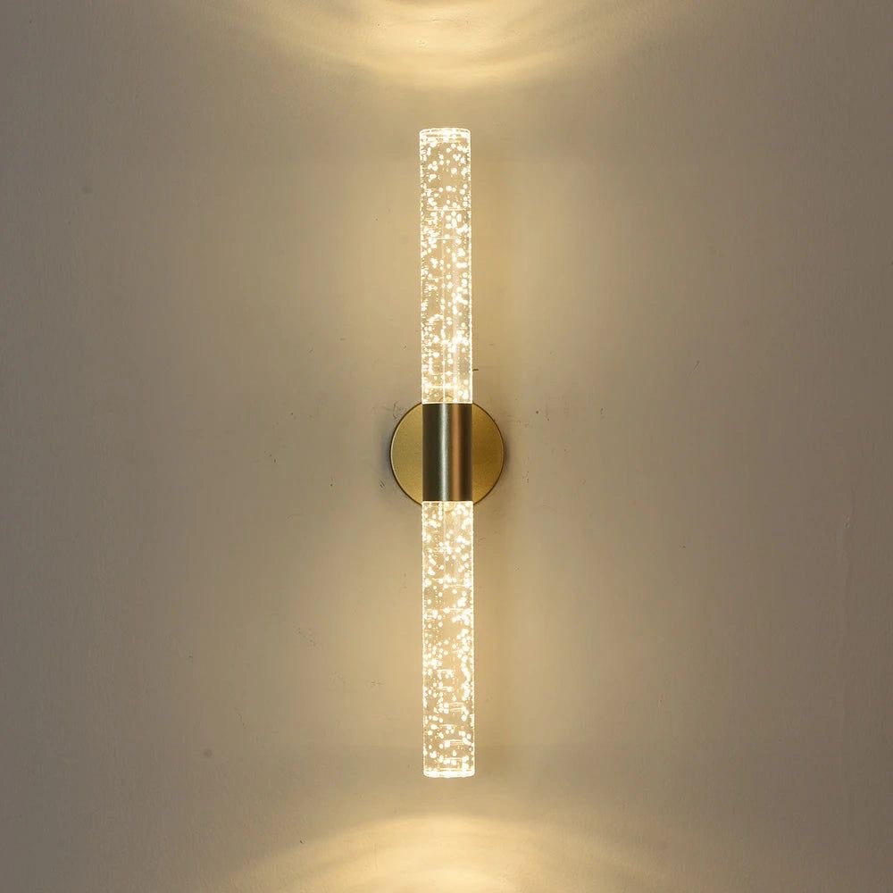 - طراحی عمودی با دو شاخه نورانی – چراغ از دو میله شفاف نورانی در بالا و پایین تشکیل شده که نور را به دو جهت منتشر میکنند و جلوهای زیبا ایجاد میکنند.